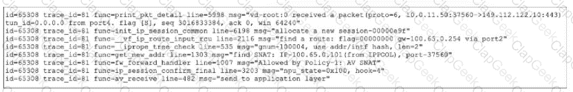 Which Iwo statements about FortiGate behavior relating to this session are correct? (Choose two.)