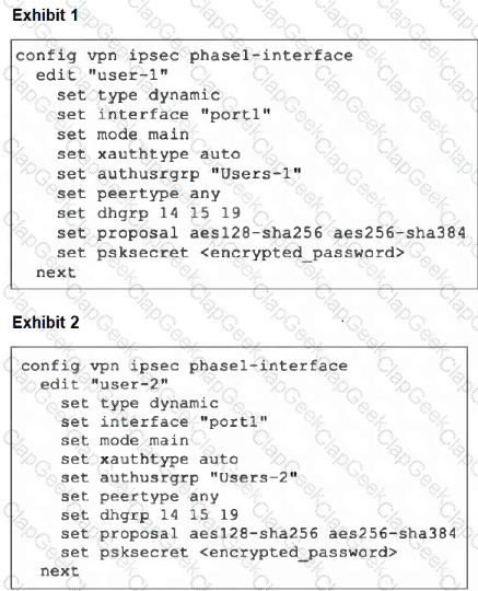 Refer to the exhibits, which contain the partial configurations of two VPNs on FortiGate.