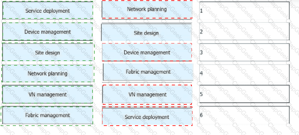 To deploy a virtual campus network using iMaster NCE-Campus, the following steps are performed. From top to bottom, sort the steps in the order in which they occur during network deployment and management.