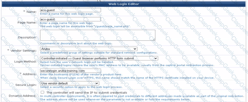You configured a tunneled SSID with captive portal and a ClearPass Guest Self Registration workflow when testing and launching the self-registration workflow, after successful registration, the login action shows the following error: