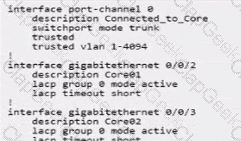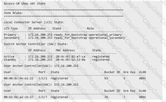 A campus topology uses VSX with a collapsed core topology. The customer added redundant SFP+ transceivers and reconfigured their mobility gateways from a single link to an aggregate Link. You are asked to verify the CLI output for the link aggregation configuration for one of the mobility gateway cluster members below.