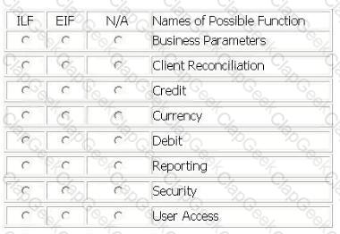 From the Names of Possible Functions listed identify the transactional functions for the IA application. Select N/A if a Name of Possible Function does not apply.