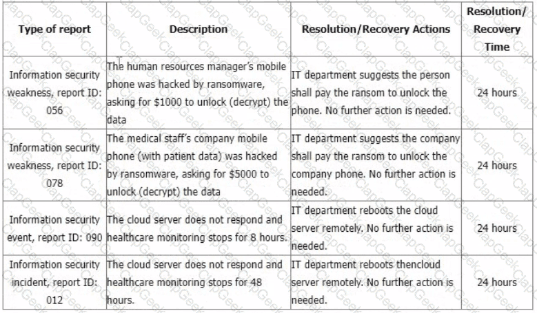 You are performing an ISMS audit at a residential nursing home that provides healthcare services. The next step in your audit plan is to verify the information security incident management process. The IT Security Manager presents the information security incident management procedure (Document reference ID: ISMS_L2_16, version 4).