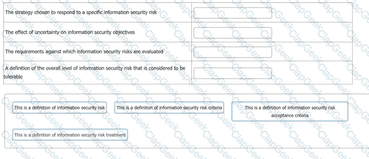 You ask him to match each of the descriptions with the appropriate risk term. What should the correct answers be?