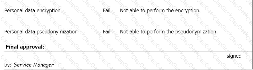 encryption and pseudonymisation tests failed. Also, whether the Service Manager is authorised to approve the test.