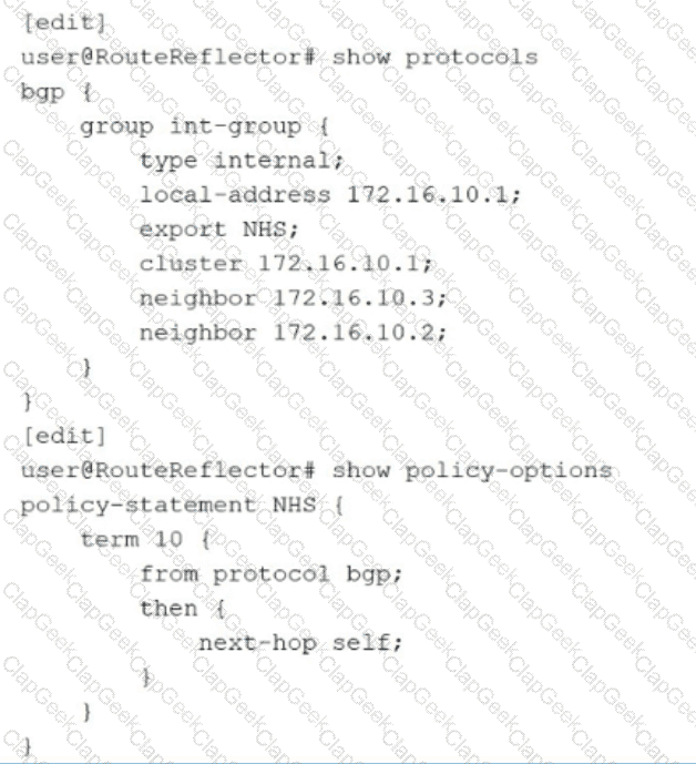 You have determined that traffic in your network is being routed through your route reflector instead of using the optimal path. Referring to the exhibit, what are two configuration changes on the route reflector that would solve the problem? (Choose two.)