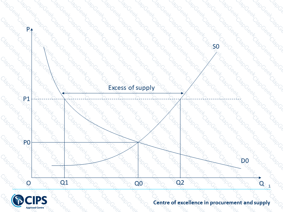 If the price of a good is above the equilibrium price, which of the following will happen?