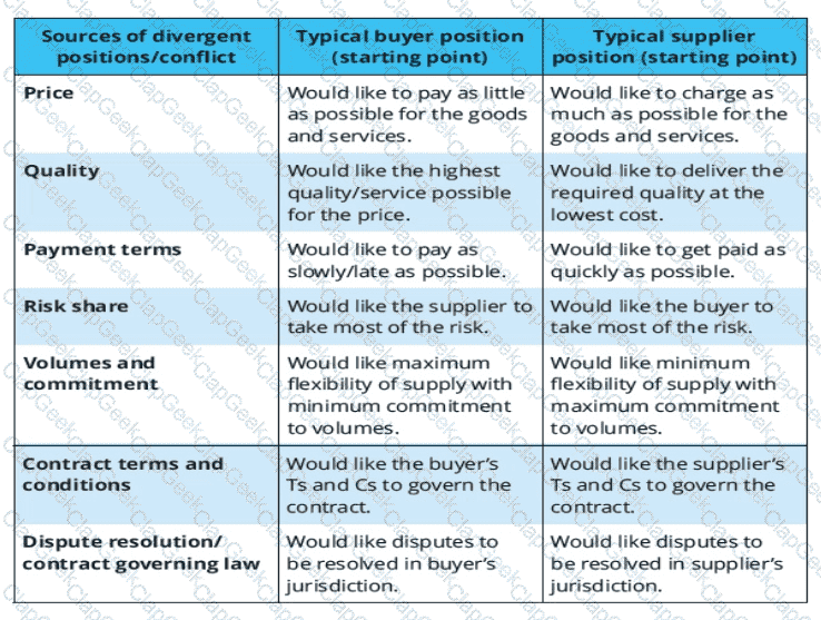 Which factors give rise to conflict within the procurement negotiation context? Select THREE that apply.