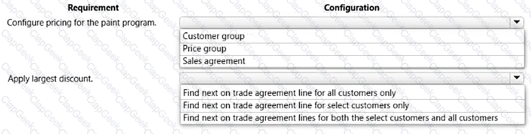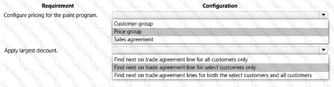 An organization has two legal entities One of the companies is going to sell» new product to the other company The company that will receive the pcoduct must get a discount on items for the first three months of initial sales. You need to configure the system to apply the discount for the specified penod. What should you do?