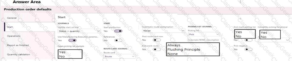 How should you configure manufacturing execution? To answer, select the appropriate option in the answer area.
