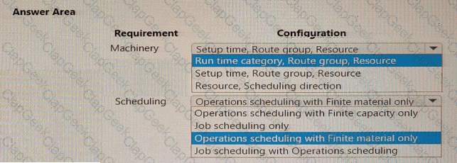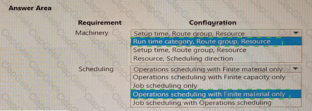 You need to configure the requirements for metal fabrication equipment maintenance. What must you configure? To answer, select the appropriate options in the answer area.