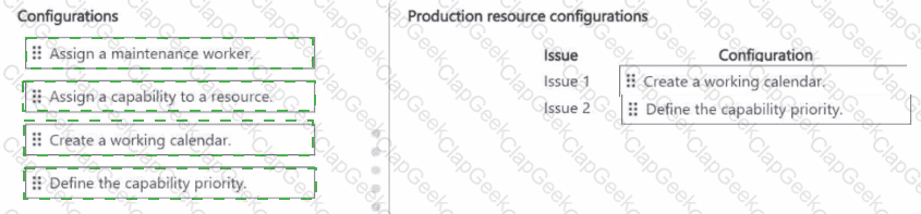 Which two configurations should you set on the work order finite capacity? Each correct answer presents part of the solution.