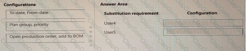 What must you configure? To answer, drag the appropriate configurations to the correct substitution requirements. Each configuration may be used once, more than once, or not at all. You may need to drag the split bar between panes or scroll to view content.