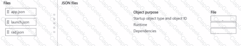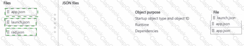 Which JSON files should you configure? To answer, move the appropriate files to the correct object purposes You may use each file once, more than once, or not at all You may need to move the split bar between panes or scroll to view content