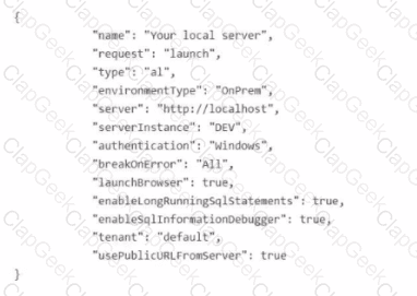 A company has an on-premises Business Central instance named TEST The instance uses Windows authorization and a developer services port of 7149 Visual Studio Code is installed on the same server.