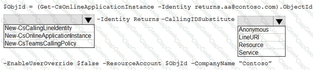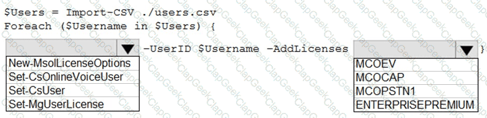 How should you complete the PowerShell script? To answer, select the appropriate options in the answer area.