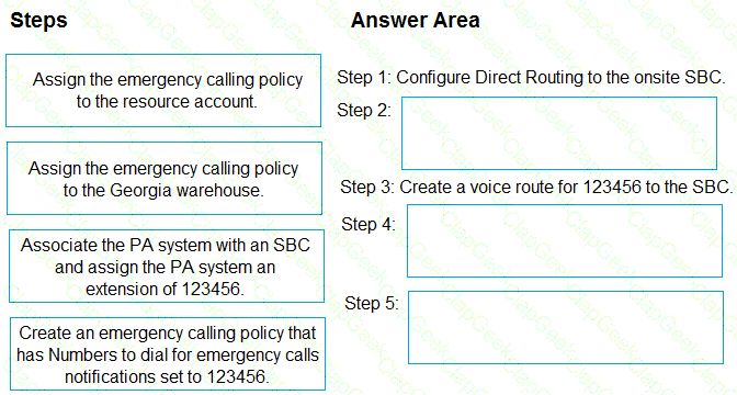 Which sequence of steps should you perform? To answer, drag the appropriate steps to the correct locations. Each step may be used once, more than once, or not at all. You may need to drag the split bar between panes or scroll to view content.