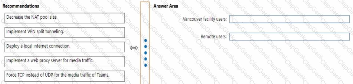 What should you recommend for the Vancouver facility users and the remote sale team users? To answer, drag the appropriate recommendation to the correct users. Each recommendation may be used once, more than once, or not at all. Vou may need to drag the split bar between panes or scroll to view content
