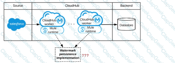 A Mule application is being designed to be deployed to several CIoudHub workers. The Mule application's integration logic is to replicate changed Accounts from Satesforce to a backend system every 5 minutes.