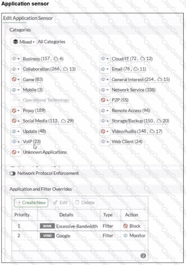 You have implemented the application sensor and the corresponding firewall policy as shown in the exhibits.
