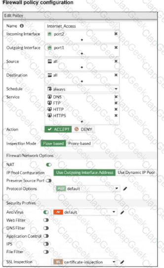 Refer to the exhibit to view the firewall policy.