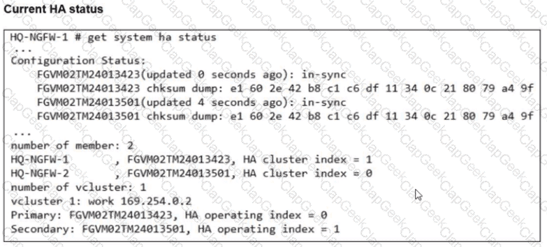 Based on the current HA status, an administrator updates the override and priority parameters on HQ-NGFW-1 and HQ-NGFW-2 as shown in the exhibits.