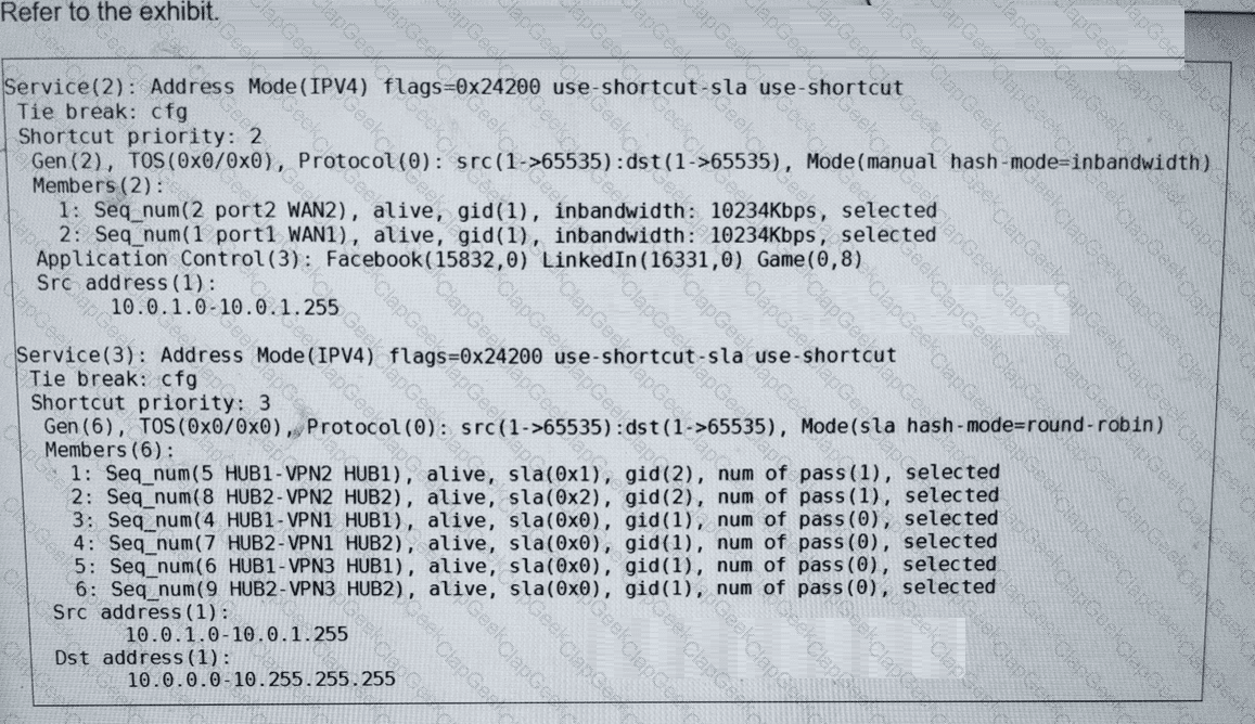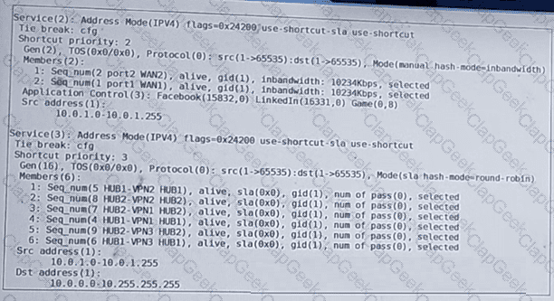 The administrator configured two SD-WAN rules to load balance traffic.