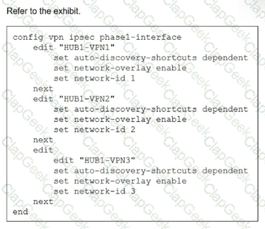 The exhibit shows the BGP configuration on the hub in a hub-and-spoke topology. The administrator wants BGP to advertise prefixes from spokes to other spokes over the IPsec overlays, including additional paths. However, when looking at the spoke routing table, the administrator does not see the prefixes from other spokes and the additional paths