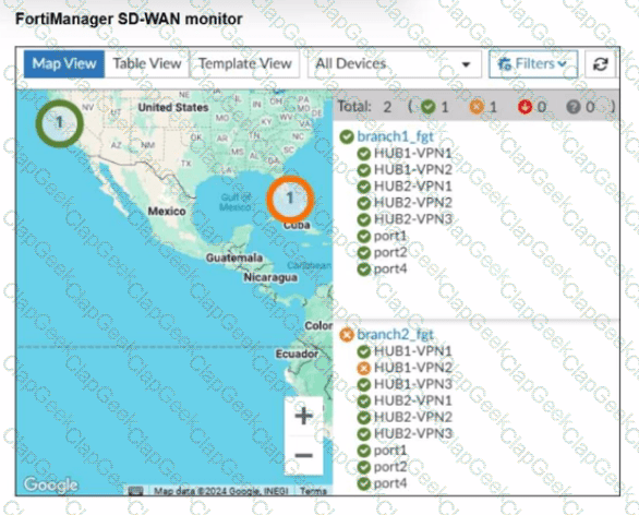 You use FortiManager to configure SD-WAN on three branch devices.