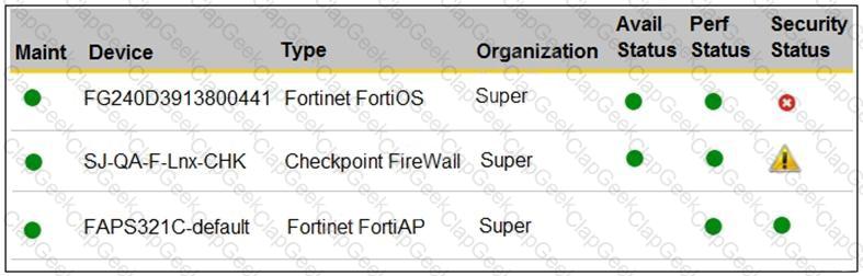 How do you view information presented in the exhibit and what does the FortiGate device security status tell you?