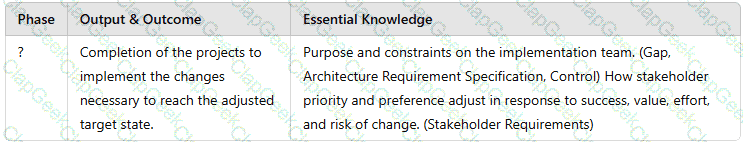 Each business unit has completed the Architecture Definition documentation to meet its own specificoperational requirements. The Enterprise Architects have analyzed the corporate changes andimplementation constraints. A consolidated gap analysis has been completed. Based on its results, thearchitects have reviewed the requirements, dependencies and interoperability requirements needed tointegrate the cloud-based solution. The architects have completed the Business Transformation ReadinessAssessment. Based on all these factors they have produced a risk assessment. They have also completedthe draft Implementation and Migration Plan, the draft Architecture Roadmap, and the CapabilityAssessment deliverables.
