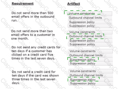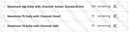 A financial services organization introduces a new policy that limits each customer to two promotional emails per month. To meet compliance requirements, the implementation team must configure this limit in the Next-Best-Action Designer.