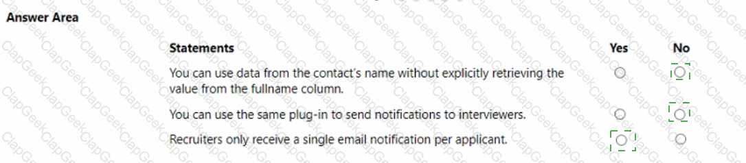 You develop the following code for the plug-in that sends email notifications to recruiters.