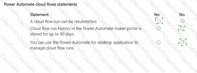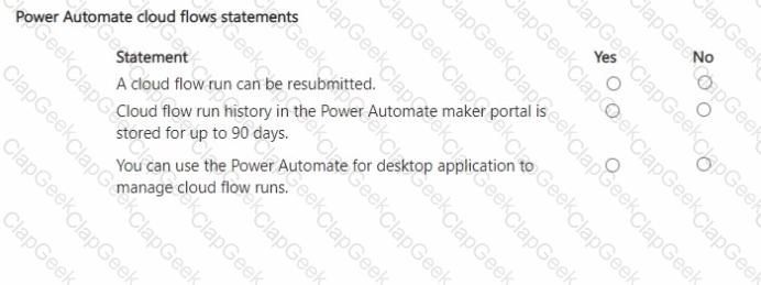 For each of the following statements, select Yes if the statement is true. Otherwise, select No.