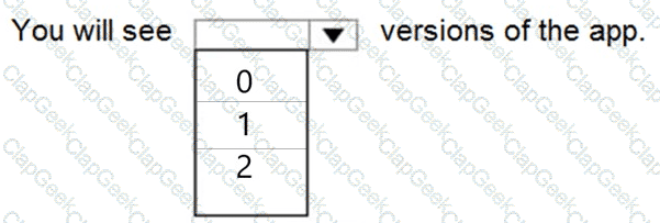 How many versions of the app are displayed in the Version tab for the app? To answer, select the appropriate option in the answer area.