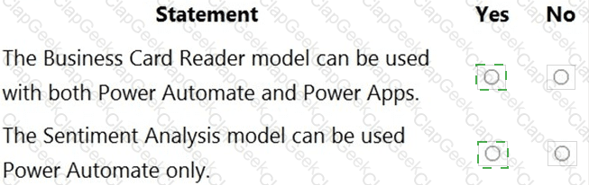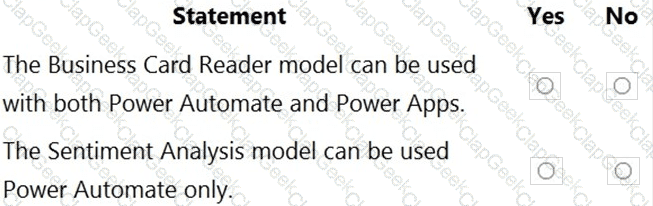 You are planning to use the Business Card Reader and Sentiment Analysis prebuilt AI models to build solutions.