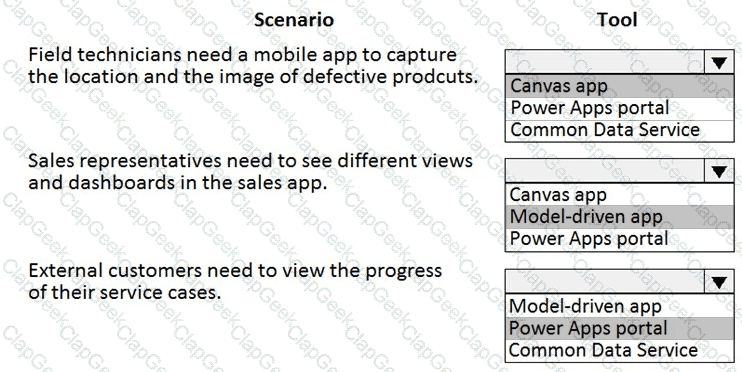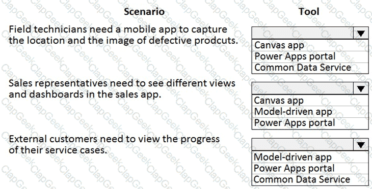 You plan to implement a model-driven app for a company. Employees will use the app to manage appointments with customers. The app must meet the following requirements: