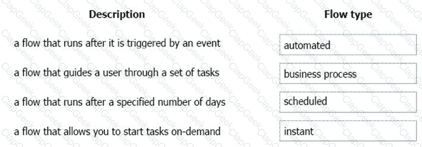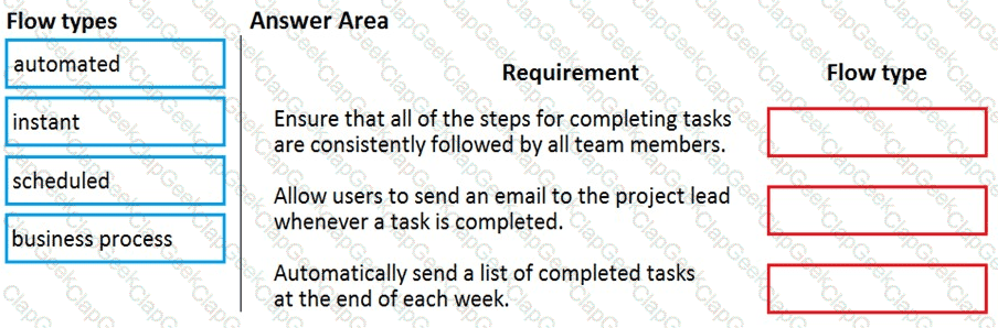 Which flow types should you use? To answer, select the appropriate options in the answer area.