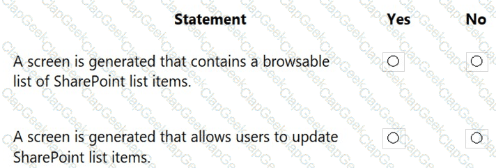 A company uses a Power Apps canvas app to enter information. The canvas app uses a Microsoft SharePoint list to store information.