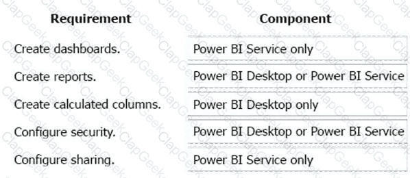 The company ' s IT support team needs to know when to install Power BI Desktop on users ' computers and where the Power BI Service will suffice to perform tasks.