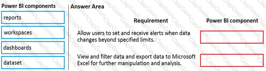 What should you use? To answer, drag the appropriate components to the correct data sources. Each component may be used once, more than once, or not at all. You may need to drag the split bar between panes or scroll to view content.