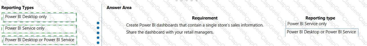 Which tools can you use? To answer, drag the appropriate reporting types to the correct requirements. Each reporting type may be used once, more than once, or not at all. You may need to drag the split bar between panes or scroll to view content.