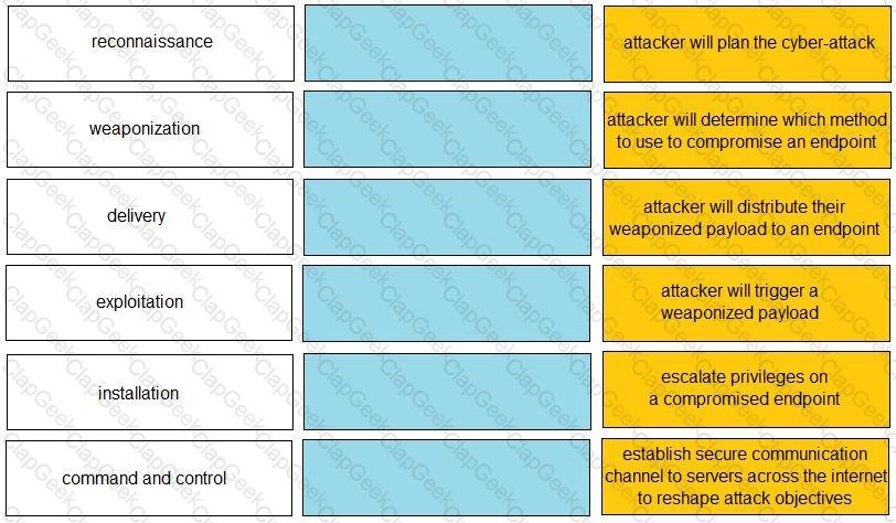 Given the graphic, match each stage of the cyber-attack lifecycle to its description.