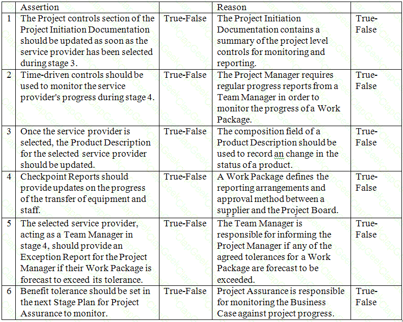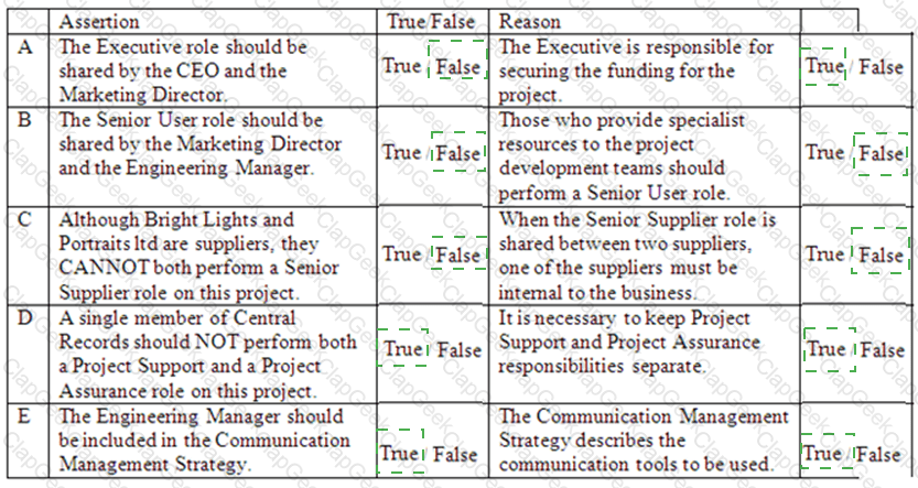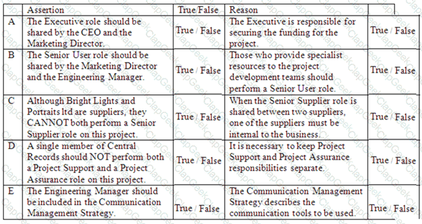 Lines 1 to 6 in the table below consist of an assertion statement and a reason statement. For each line identify the appropriate option, from options A to E, that applies. Each option can be used once, more than once or not at all.