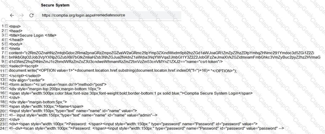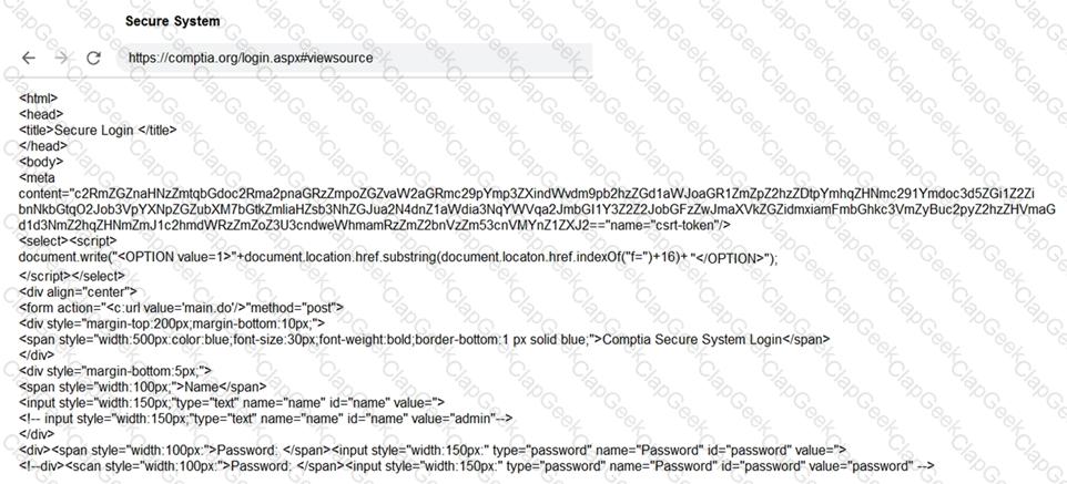 In a file stored in an unprotected source code repository, a penetration tester discovers the following line of code: