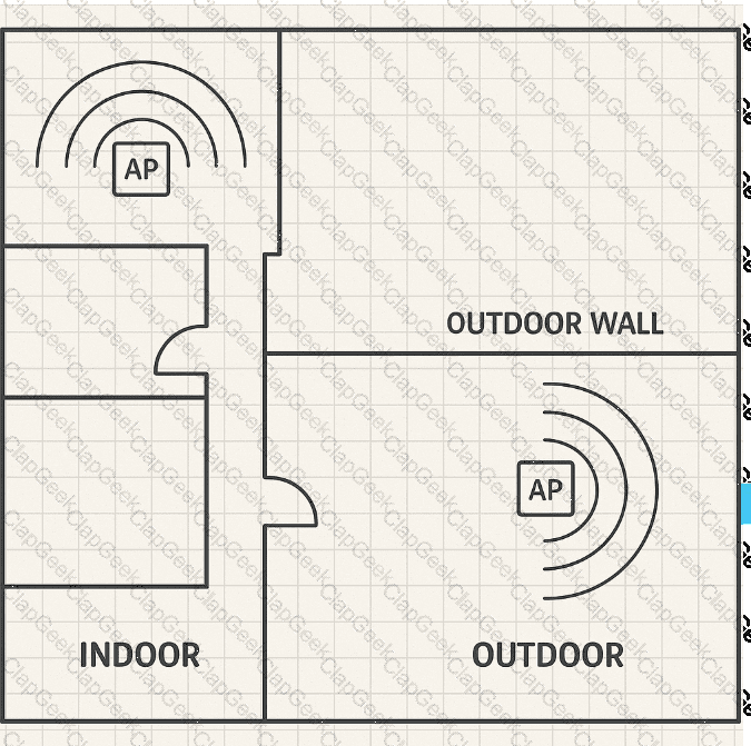 Based on the AP mounting locations, which AP antenna types provide complete coverage to both the indoor and outdoor areas?
