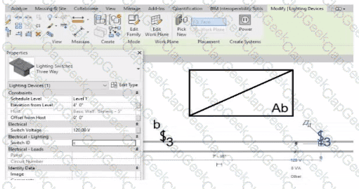 An electrical designer is trying to add the selected three-way switch to the existing switch system "b". The designer is unable to add the switch to the switch system.