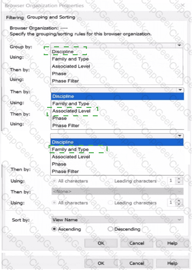 An electrical designer wants to organize the Protect Browser as shown in the exhibit. Select the correct options in order to achieve the desired organization. (Select three.)