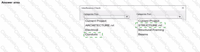 An electrical designer needs to check for Interferences between conduit in the host model and beams in a linked structure model in the Interference Check dialog, select the items that the designer must select to perform the interference check. (Select two.)