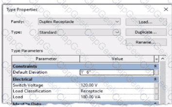 A portion of an electrical fixture family's Type Properties is shown in the exhibit.